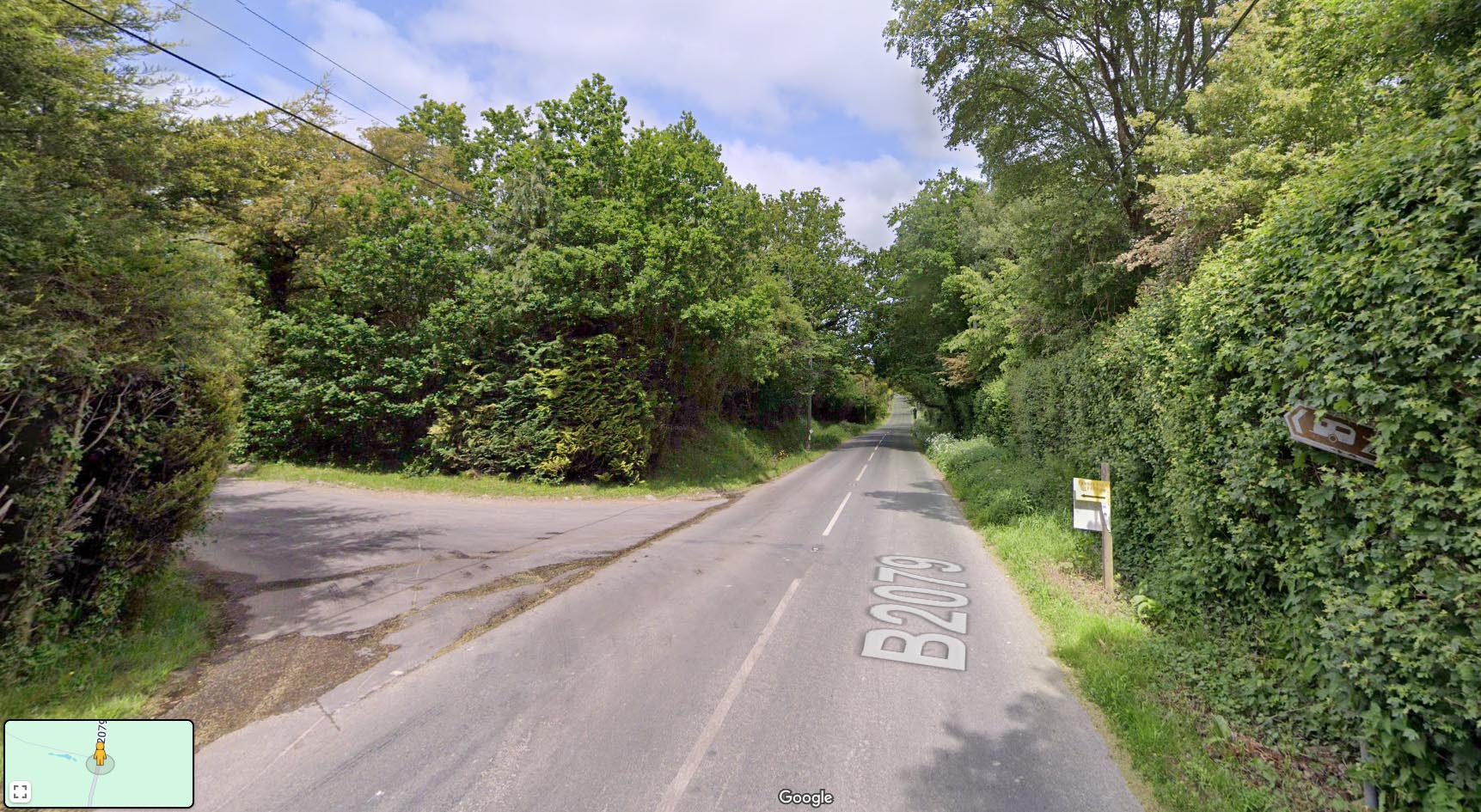 Streetview of B2027 looking North at entrance to Tanner Farm Park