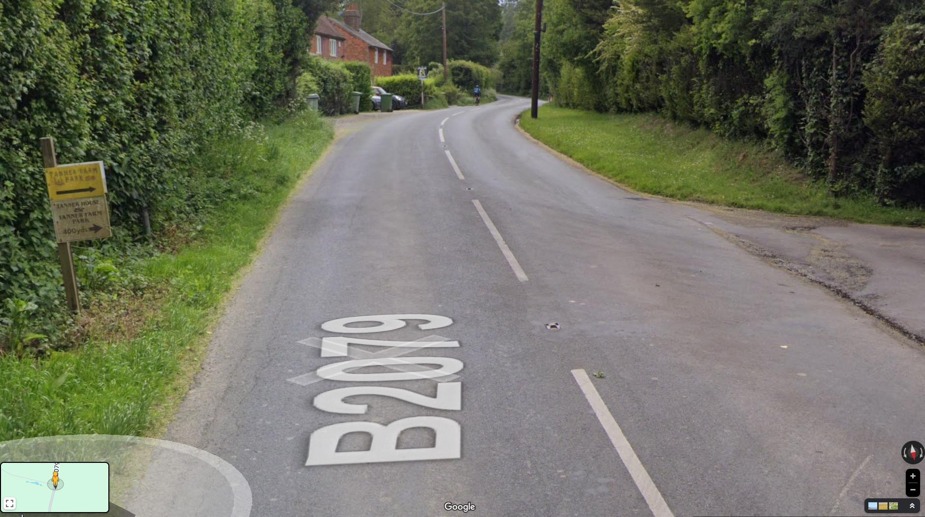 Streetview of B2027 looking South at entrance to Tanner Farm Park